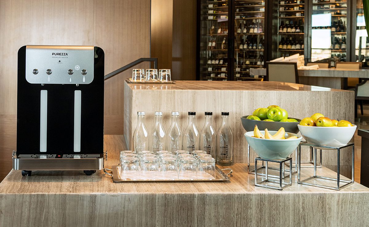 Modele zarówno nablatowe jak i stojące gwarantują wydajność od 20 l wody do nawet 280 l/h, co czyni je idealnym wyborem dla hotelowych lobby, części wspólnych korytarzy, sal konferencyjnych, kuchni czy pomieszczenia dla personelu. Można je łatwo wpasować w recepcję lub bar śniadaniowy. Dedykowane szklane butelki do serwowania wody są eleganckie i podkreślają wizerunek premium. Jest możliwość także umieszczenia logo hotelu na butelkach. Szklane butelki można myć w zmywarce co ułatwia dbanie o nie.